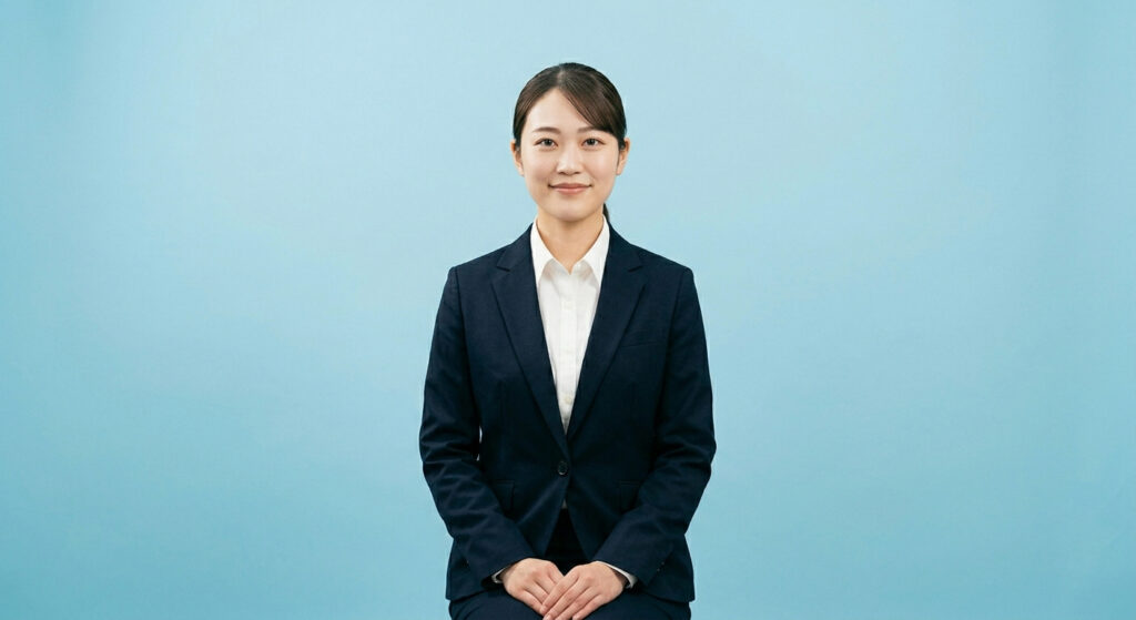 →几帳面さ誠実さを伝えるため、落ち着いた真面目な表情
